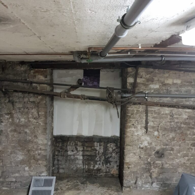 Berlin-Moabit Gewerbegebäude Vertikale Außenabdichtung. Horizontale Kapillarsperre. Sanierputz.