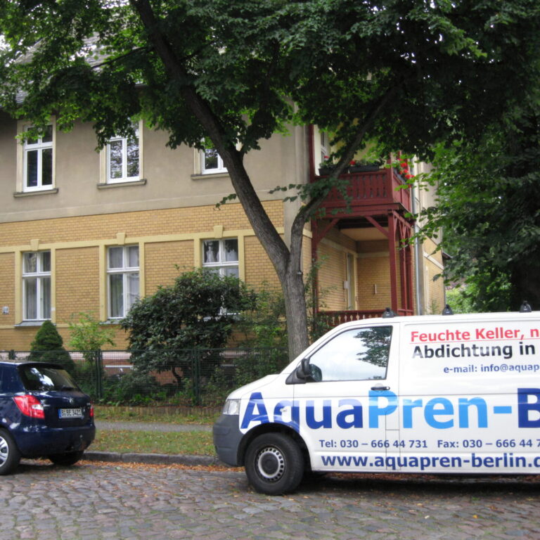 Vertikale Außenabdichtung, Erneuerung der Lichtschächte, Horizontale Kapillarsperre in den Außenwänden des Kellermauerwerkes. Berlin – Zehlendorf